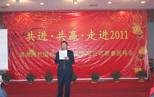 辭舊迎新,2011年1月28日湖機國際在九禧酒店舉行新春團拜會。會上劉總首先對2010年公司的經(jīng)營狀況進行了總結,對2010年度優(yōu)秀單位及員工進行了表彰,并對2011年工作進行了全面部署。