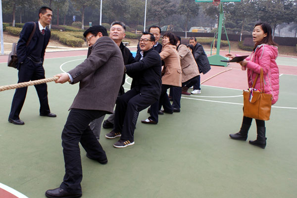 2014年元月26日上午10點,微風拂面,湖機國際第一屆“迎新春、團結杯”拔河比賽在比賽的號令中開始。公司技術管理團隊成員熱情高漲,在震天響的加油助威聲中,高管隊勝配套隊,鋸床隊勝職能隊。稍作休息后,最讓大家期待的決賽終于吹響了號角,高管隊VS鋸床隊,大家的加油助威聲更響亮了,雙方隊員拼了命地使勁,各個漲紅了臉,最終高管隊2:0戰(zhàn)勝鋸床隊取得了本次拔河比賽的冠軍。