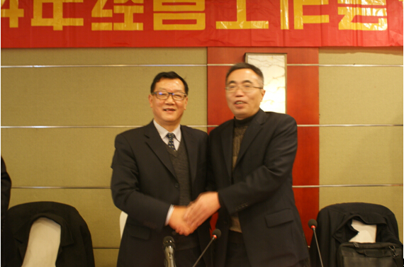2014年年度經(jīng)營(yíng)工作會(huì)議上,公司董事長(zhǎng)劉年紅先生與公司董事、鋸床分公司經(jīng)理文義德先生簽訂2015年目標(biāo)責(zé)任書