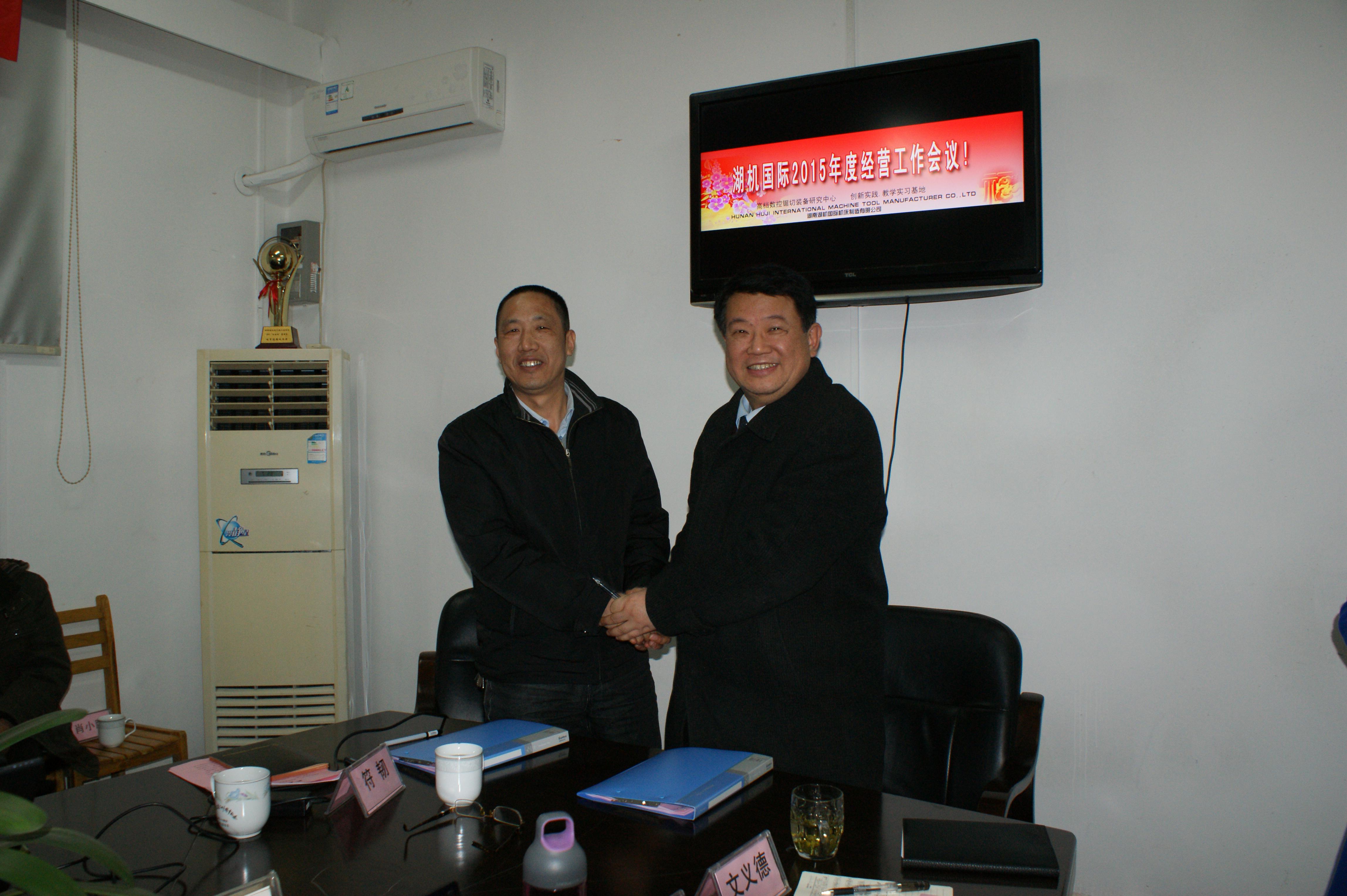 會上,會議首先聽取了符韌總經(jīng)理題為《堅定信心,破冰前行》的2015年工作總結(jié)及2016年工作思路報告。符總指出,2015年在國家宏觀經(jīng)濟增速持續(xù)下行的大環(huán)境下,公司的經(jīng)營業(yè)績受到了創(chuàng)業(yè)6年來市場最強烈的沖擊。2016年公司各項工作應(yīng)以董事會提出的2016年工作思路為行動綱領(lǐng),全面貫徹落實董事會新時期提出的兩大調(diào)整和打好三大攻堅戰(zhàn)的工作要求。馬斌總助、柳勇總助、羅潤湘副經(jīng)理、肖雪梅總助、胡偉部長分別代表工程配套分公司、環(huán)衛(wèi)機械配套分公司、鋸床分公司、管理辦公室、財務(wù)審計部與公司總經(jīng)理簽訂了2016年目標(biāo)責(zé)任書和工作任務(wù)書。公司總工程師葉鈞針對2015年鋸床改進提升和2016年公司科技工作作了主題發(fā)言。
