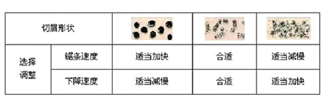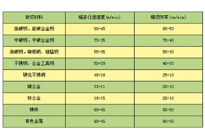2.鋸削速度及鋸切效率建議參考表
