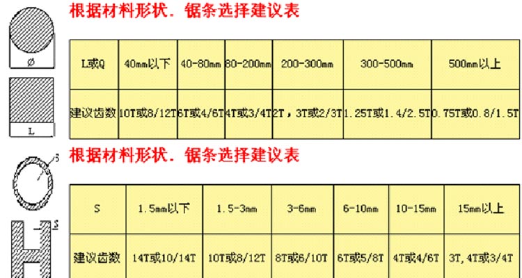 3.鋸條選擇建議表